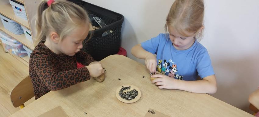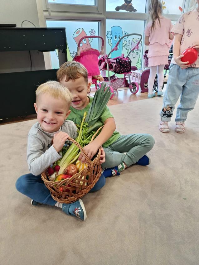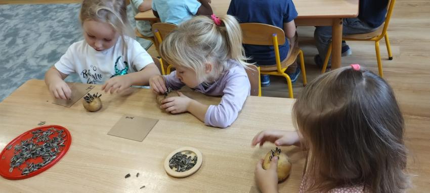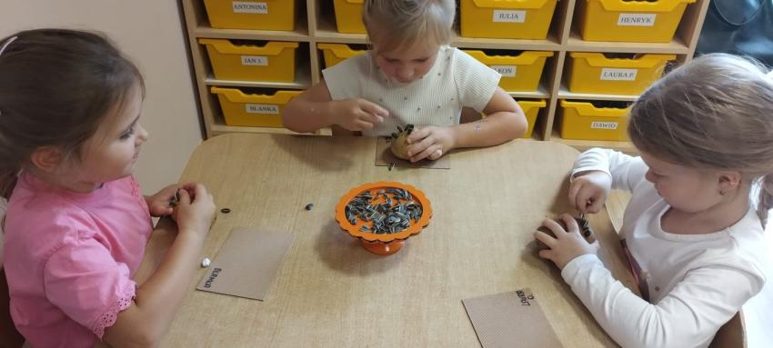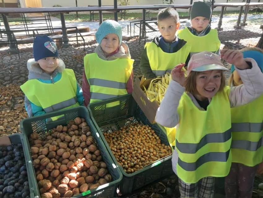 jesienne skarby w koszykach zbierają.